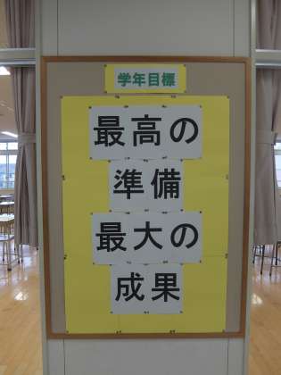 3年生の廊下には、学年目標と学級委員会の目標(でしょうか?)が掲示されています。