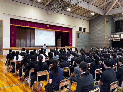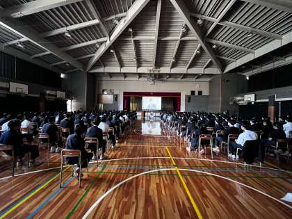 片山先生からセーフティ教室についての説明後、成城警察の方からのお話、薬物乱用防止に関するDVDを鑑賞します。