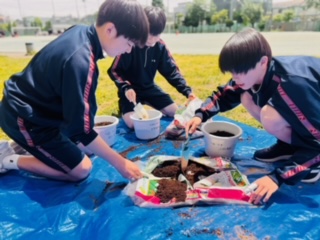 本日の14期生は、夏野菜を植えました。楽しそうに作業しているところをパシャリ!頑張って育ててくださいね!(加我)