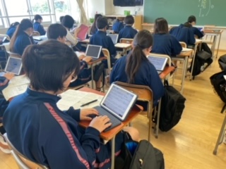 タブレットを活用して、定期考査の振り返りをしています。次の期末考査へ繋げよう!田島