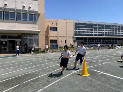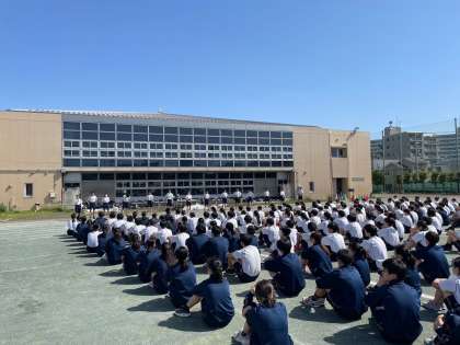 晴天に恵まれ、1回目の学年練習が終わりました。(片山)