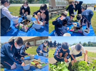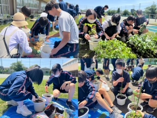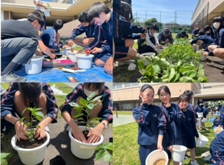晴天の中、自分で選んだ夏野菜を楽しそうに植えていました!みんないい表情をしています!(加我)