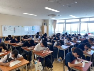 2学年都道府県テストの様子です。しっかり準備をしてきたことがよく分かります。田島