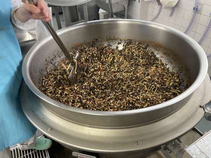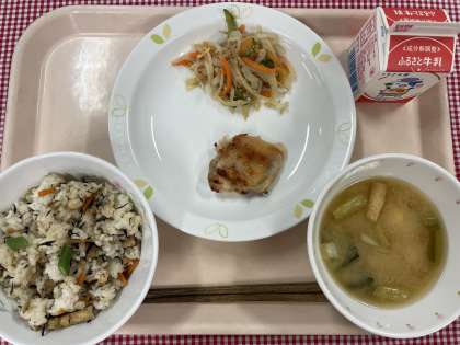 ひじきごはんは、ひじきを丁寧に煮て作っています。ごはんにもしょうゆや塩を入れて炊きこんで、全体に味がいきわたるようにしています。