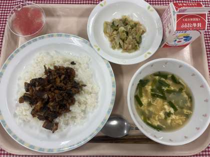 今日は、入梅献立でした。いわしは短冊切りのものに酒としょうがで下味をつけ、小麦粉やでんぷんをまぶして揚げています。甘辛いタレで絡め、食欲が進みました。