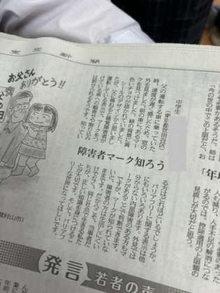 3-1の生徒の投稿が新聞に掲載されました!