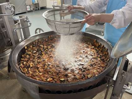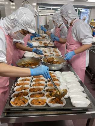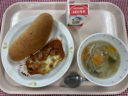 ミートグラタンは、なすやズッキーニを油で絡めて焼いてから合わせています。じゃがいもも入り、夏野菜たっぷりで大好評でした。時折、なすと戦っている子も見かけられましたが、苦手でもちゃんとチャレンジしていてえらいです!!