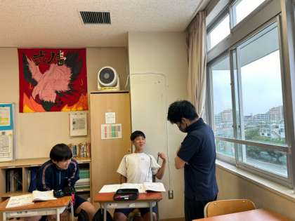 今日は放課後の自習教室最終日、これまで定期考査で一番の参加がありました。放課後に学習をするなかでたまに先生と冗談をとばし合うのも楽しそうでした。