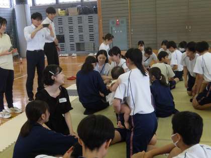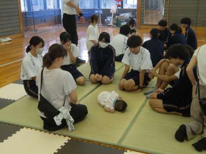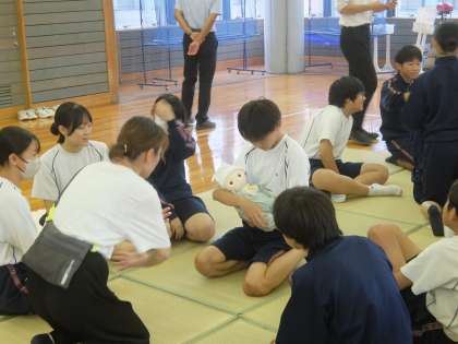 昨日から3年生で「赤ちゃんふれあい体験」が始まりました。最初は人形で抱く練習をしてから、お母さんの説明を聴き、赤ちゃんと触れ合いました。これは、家庭科の授業の一環として行っているものですが、その内容以外にも、中学生にとっては自分自身を振り返る機会になったり、自己有用感を高める機会になったりもします。学校では教科の学習以外にもいろいろな体験活動を行っています。