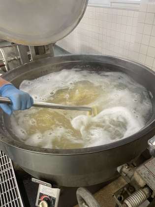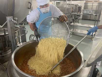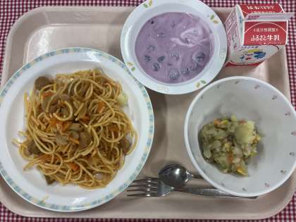 スパゲティの麺をゆでた後、ナポリタンの具と炒め合わせています。具と合わせた分、量が多く見えますが、モリモリとよく食べてくれてくれました。