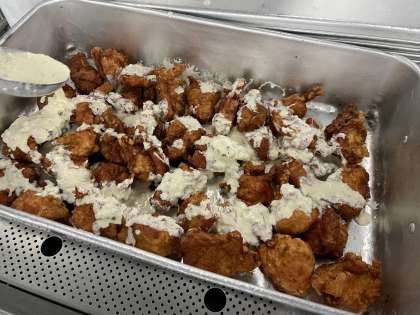 宮崎県の郷土料理でした。チキン南蛮は、鶏肉に衣をつけて揚げた後、南蛮ダレを絡ませ、タルタルソースをかけています。暑い日が続いているので、しっかり食べて、熱中症に気を付けましょう!!