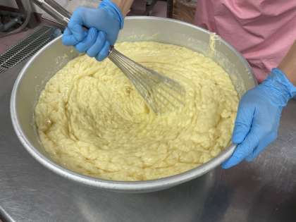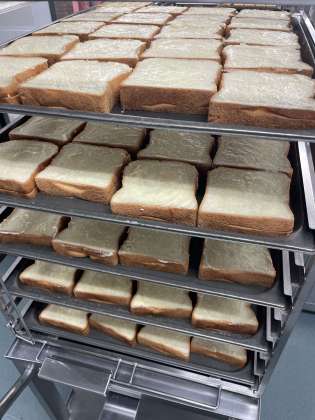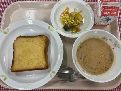 レモンシュガートーストは、レモン汁と砂糖、バターをよく混ぜ、食パンに塗って焼いています。給食室の中も連日非常に厳しい暑さですが、パンの端までキレイに塗ってくれているので、耳までおいしく食べられました。レモンの風味が爽やかな夏にぴったりのトーストでした。