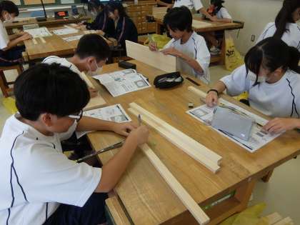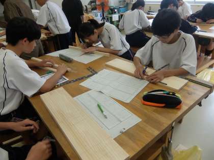 昨日は1年生の技術の授業にお邪魔しました。木材を加工して自分で選んだラックなどを作ります。3Dプリンターなどが登場する時代ですが、木材に触れ、自分で組み立てる体験というのはとても大切だと思います。自分で作業が確認できるようにケガキの見本も置いてありました。どんな作品に仕上がるのか楽しみです。