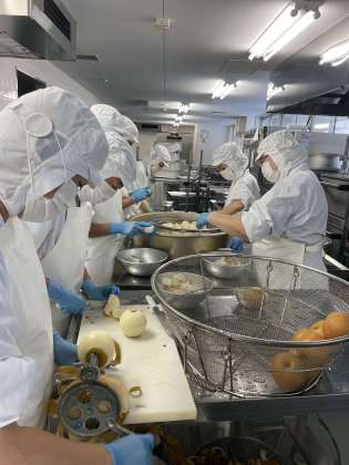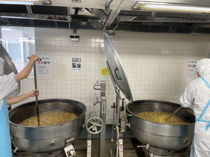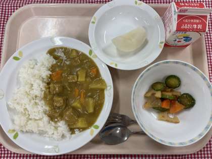 カレーは辛さ控えめにしましたが、1年生は「辛い〜」や「甘い〜」などそれぞれの感想を言いながら食べていました。さすがのカレーライス、どのクラスもとてもよく食べてくれていました。