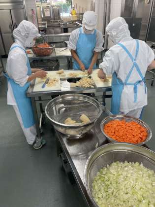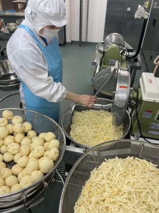 50キロ以上のじゃがいもは、千切りにするのに機械を使っています。他の野菜類だけで100キロ以上ありましたが、それらはすべて手切りしてくれています。