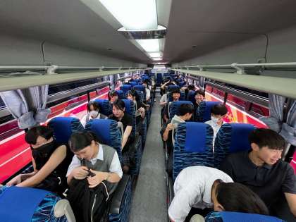 京都に到着し、バスに乗り込みました。 ここからクラス別行動になります。 稲見