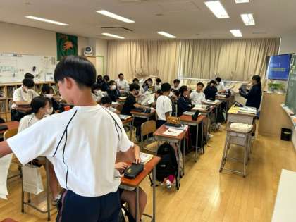 2-5の歴史の授業前「係が欠席なのでプリント配りますね」と2人の生徒が配布してくれました。さらっと自分からところが素晴らしい。