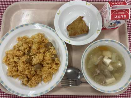 チリパウダーやパプリカ、カレー粉などを使い、香りにも食欲が刺激されました。ごはんには、カレー粉を炊き込み、作った具を後から混ぜ込んでいます。