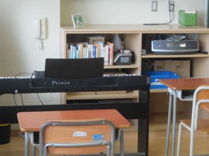 先週末に学芸発表会委員が教室に電子ピアノとCDデッキを準備してくれました。今日から学芸発表会に向けての練習期間が始まります。