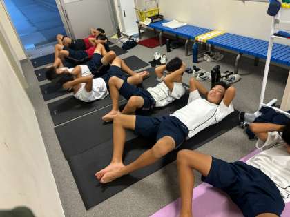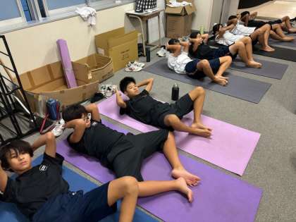 雨で走れないので、室内で筋トレをしています。来年の夏に向けて頑張ります!(片山)
