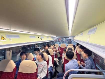 バスへの移動は雨が強く、びしょ濡れになりましたが、3組は二階建てバスということもり、バスに乗っただけで笑顔に溢れています。