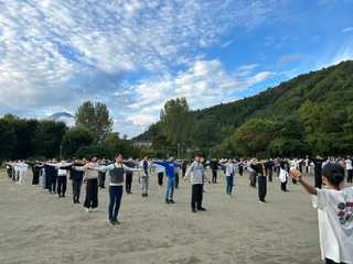 おはようございます!今朝の気温は9℃です。ラジオ体操から始まりました。良い1日にしていきましょう!