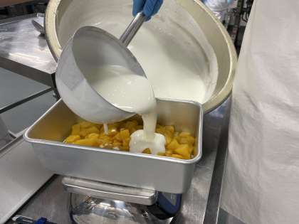 ピーチヨーグルトは、桃の缶詰を配缶した後、砂糖をまぜたヨーグルトを合わせて配缶しています。隠れた?人気メニューです。