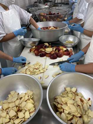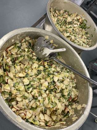 今日はサラダに生のりんごを入れています。品種は「秋映」で、皮はきれいな濃い赤色でした。食べるとシャキシャキと食感がよく、甘酸っぱさがサラダの爽やかなアクセントになってくれました。