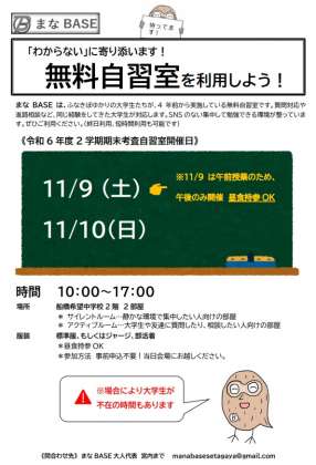 フナキボでは学校運営委員会にまなBaseという組織があり、定期考査1週間前の週末に自習室を開催しています。卒業生を含めフナキボに関係する大学生が勉強を教えてくれます。このような取り組みは他ではなかなかありません。恵まれた環境をぜひ生かし、力を付けてほしいと思います。