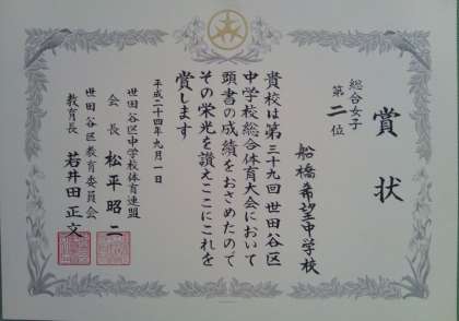 世田谷区中体連夏季総合体育大会は、各運動部の夏季大会の総合成績を競うものです。