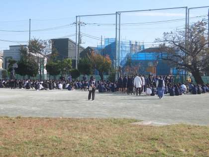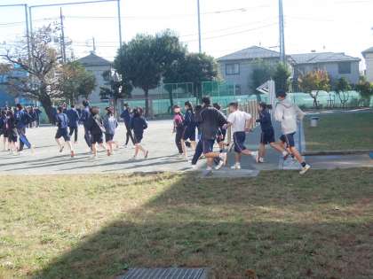 行事というと、運動会や学芸発表会を思い浮かべると思いますが、毎月行う避難訓練も大切な行事です。今回は時間を予告せず、休み時間に地震が発生したという想定で訓練をしました。この瞬間に地震が起きたらどう自分の身を守るのか。この機会に考えてください。