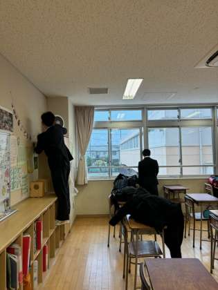 雨が降っているので、校内清掃を行いました。(片山)