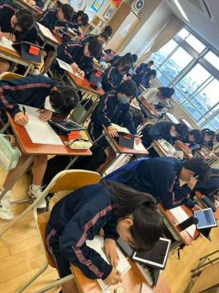 鎌倉事前学習が始まりました。どのクラスも静かに集中して取り組んでいました。