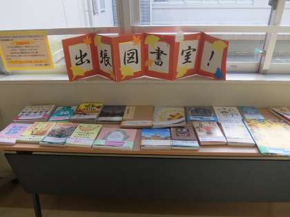 現在各学年の廊下に出張図書室がOPENしています。1、2年生はこれから冬休みに向けて、3年生は勉強の息抜きに読める本を探してみてはどうでしょうか。