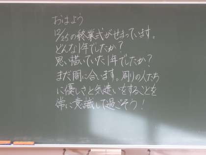 今学期も残すところあと2週間になりました。今朝、あるクラスの黒板に目が留まりました。時間はあっという間に過ぎてしまいますが、優しさを忘れないようにしたいですね。