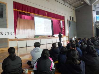 昨日は毎年行われている青少年船橋地区委員会主催の中学生研修会が行われました。今年は、フリー・ザ・チルドレン・ジャパンの出野様にご来校いただき、子どもの人権について、クイズやゲームを交えて教えていただきました。普段ゆっくり考えることができないテーマなので、大人も子どもも勉強になったと思います。ありがとうございました。