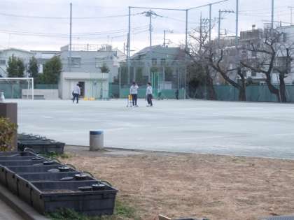 校庭では寒い中、部活動の生徒が元気に練習をしていました。