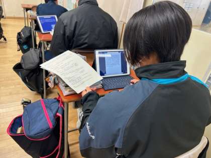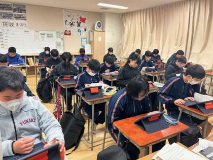 2年生歴史の授業では、まとめの活動として歴史上の人物へ、未来からの手紙を書く活動をしています。タブレットを活用して、オリジナリティある作品ができています。