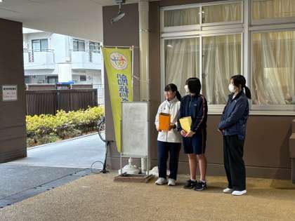今朝から3日間、校門で書き損じハガキを回収しています。