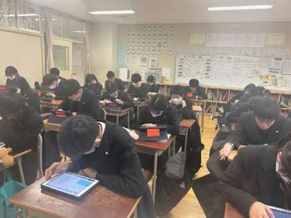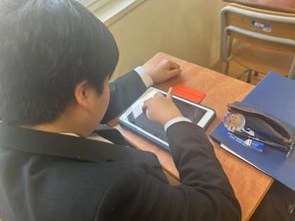授業のちょっとした時間に都立の過去問に挑戦する「過去問トライ」を進めています。タブレットで配信できるので資料提示や解説が短時間で行えました!