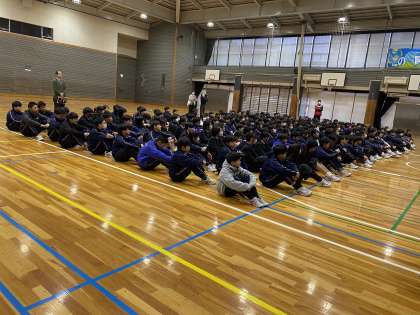 今朝は、1年生定例の学年集会。学級委員が、挨拶や授業中の切り替えの大切さについて、自分たちの言葉で話しました。あと2ヶ月半で2年生。後輩の良い見本になれるようがんばりましょう!(竹腰)