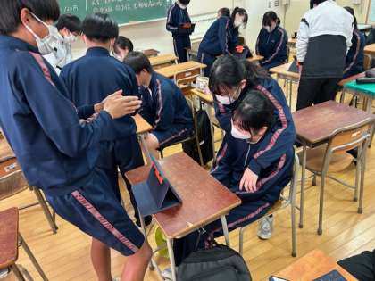 3-4の公民の先生生徒方式(教え合い活動)ではベストティーチャーに全員の前での授業をお願いしました。