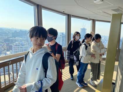校外学習も終盤。マリンタワーから横浜を眺めます!晴天に恵まれたのは、みんなの日頃の行いのおかげかな(竹腰)