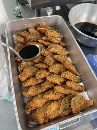 ブリカツのブリが、いつもよりカチカチに凍って届いたので、最初衣がつきにくく、大変でした。丁寧に手をかけて衣をつけてくださいました。