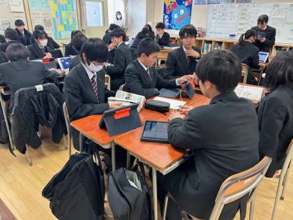 ロイロノートを使って幕末の歴史の流れについて紙芝居形式での発表の準備を始めました。アウトプットを軸に自立した学習者を目指します。