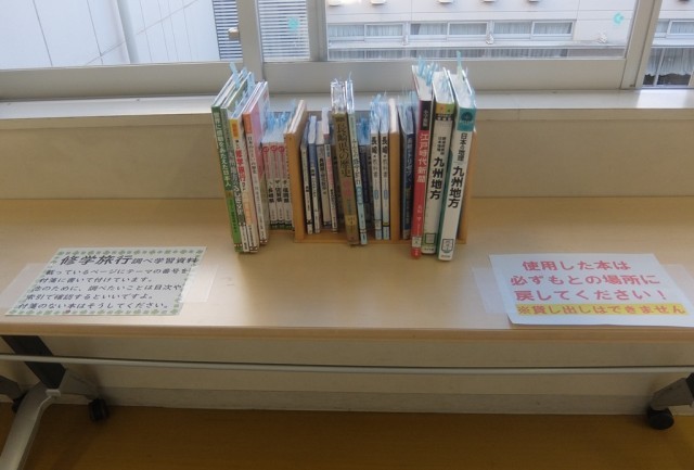 さて、2年生の廊下には、職場体験のまとめレポートが掲示され、来年度修学旅行で訪れる長崎の資料が設置されていました。今年度の振り返りをしっかり行いつつ、次年度に向けて準備をしていきましょう。
