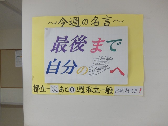 また、3年生は今週末が都立の一般入試になります。ここまで長かったと思いますが、よく頑張りました。最後は健康管理をしっかり行って、べストコンディションで試験に臨んでください。