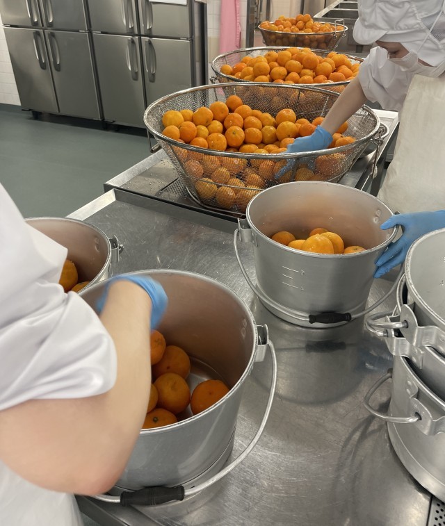 今日は運動会の予行でした。給食室では、冷凍みかんも3回洗い、間違いがないように2回数えています。手早く作業してくれているので、ちゃんと凍ったみかんが教室に届けられました。暑い一日になったので、冷凍みかんがとても喜ばれました。暑さでバテているかな?と思いましたが、スタミナ丼もとてもよく食べてくれていました!!この調子でしっかり体調を整え、運動会で力を発揮できますように!!