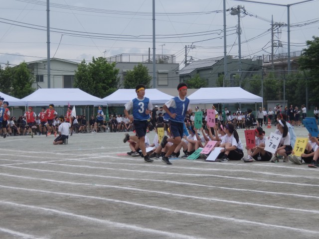 1500m走が終わり、2年100m走を行っています。