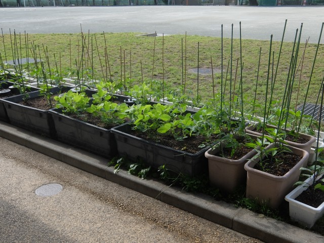 久しぶりに日差しがあり、さわやかな朝です。校長室前のプランターもJRC部がチューリップから様々な野菜に植え替えています。夏の収穫が楽しみですね。